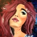 Dit schilderij vangt de essentie van beweging en emotie in een enkele scène. Het beeldt een violiste uit, volledig opgaand in haar muziek, terwijl haar lange blonde haar in wilde golven om haar heen danst.